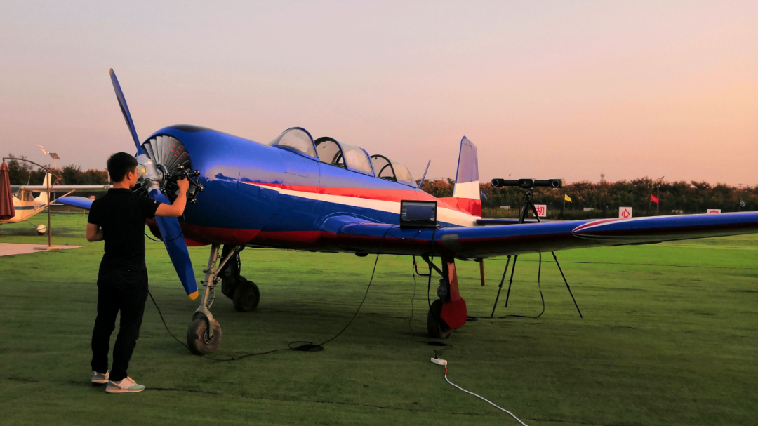 此次掃描包括一臺初教6真機內(nèi)艙、一臺完整真機軀干部分與內(nèi)艙,以及一臺運20模型機。針對不同飛機不同部分的掃描需求,分別使用了藍色激光手持掃描儀和光學(xué)追蹤掃描儀進行掃描。