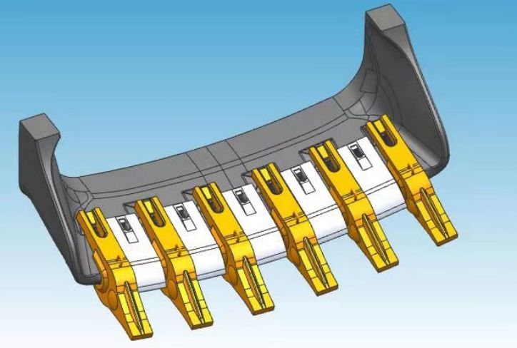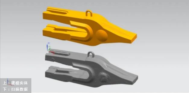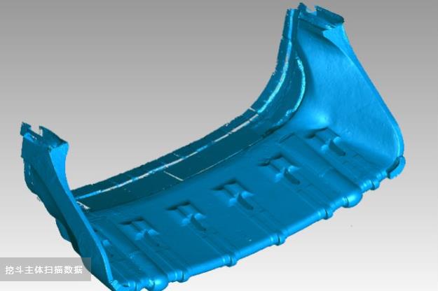 客戶主要經(jīng)營礦山機械的開發(fā)和生產(chǎn),現(xiàn)在需要對現(xiàn)有老舊礦山挖斗進行更新優(yōu)化和創(chuàng)新。礦山挖斗本身較大,長度約3米,主要掃描區(qū)域為挖斗前裝配挖齒的部分,最后將挖斗主體與配件挖齒裝配,進行開模加工。